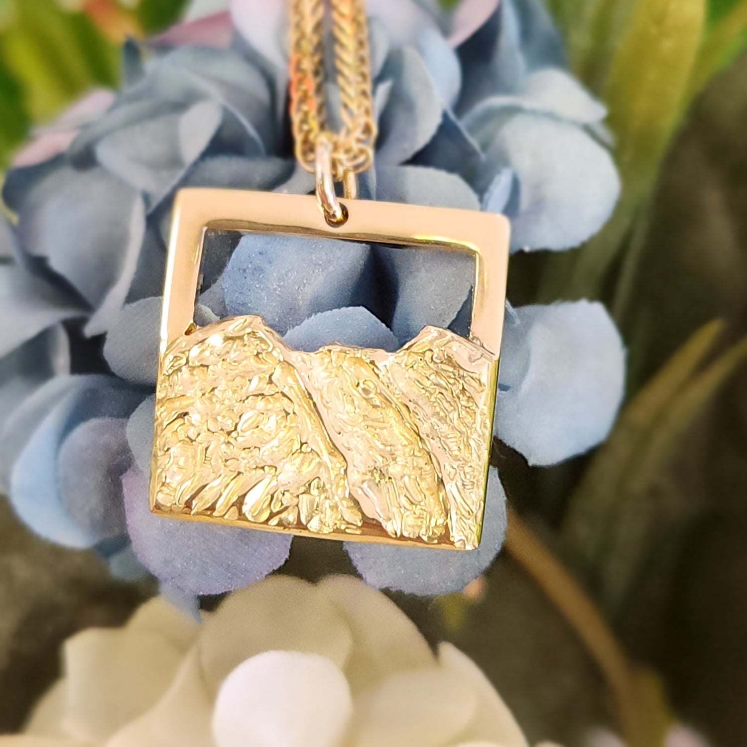 A beautiful 18ct yellow gold commissioned piece of jewellery. inspiration comes from the north ridge made from a wax carving then cast into gold