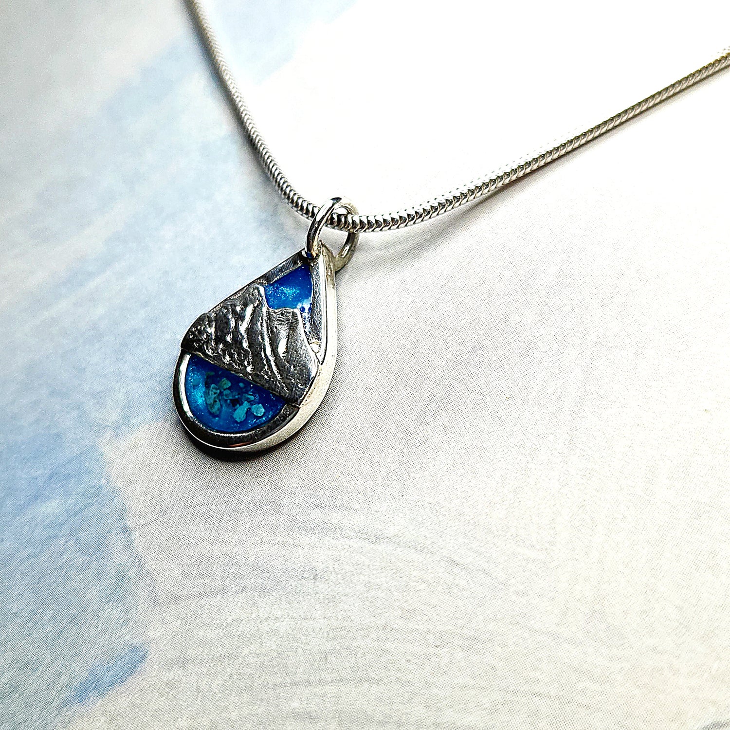 Sea Theme Ashes into Jewellery, with a blue topaz set over the ashes