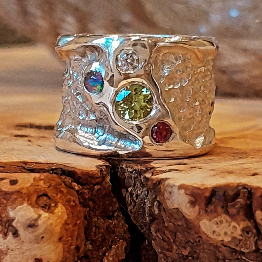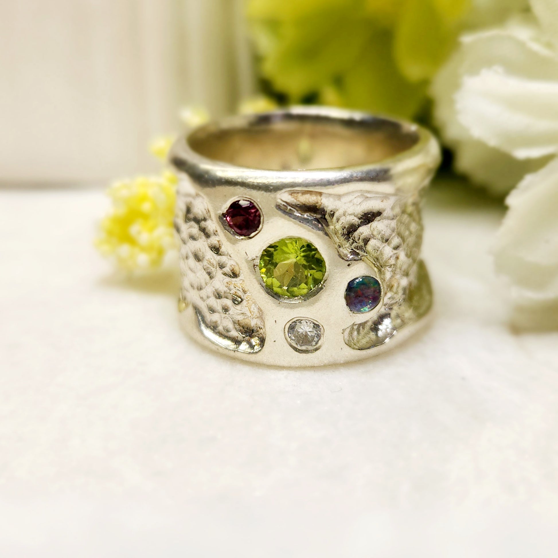 Set with Peridot, opal, tourmaline and cubic Zirconia